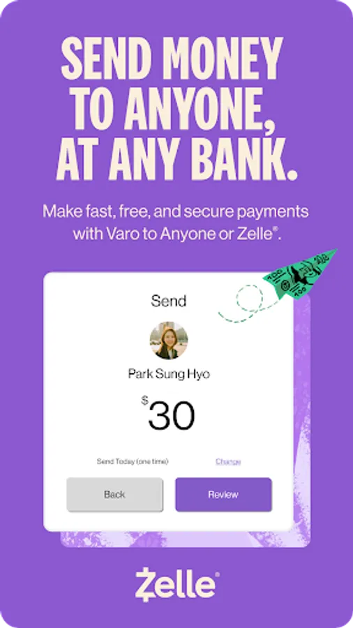 • Instantly send/receive money fast & free with Zelle®⁶ & Varo to Anyone