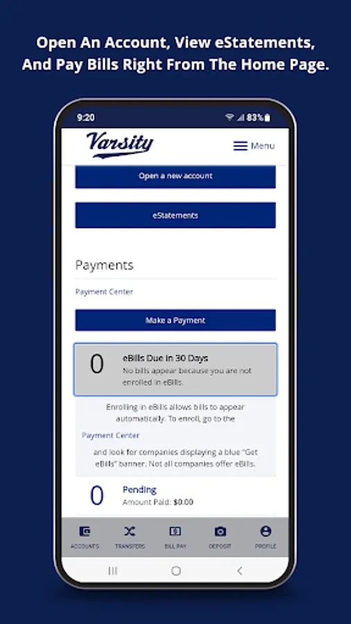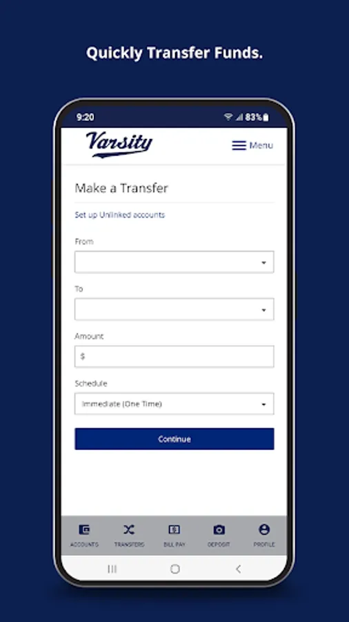• Easily transfer money between your Varsity bank accounts or between Varsity and external bank accounts