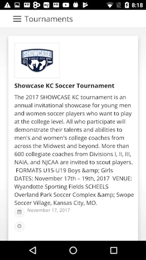 Varsity is a mobile app meant for college coaches to view Tournaments, Teams, and Players.