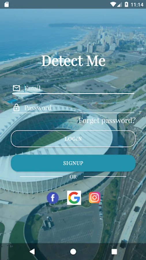 - The user can log into the DetectMe application with a valid email address and password, or via Facebook login, Instagram login, and Google login.
