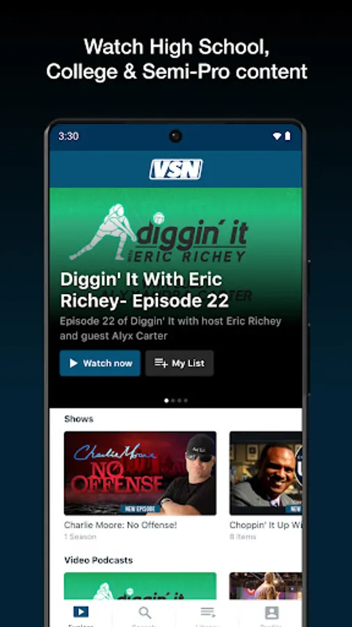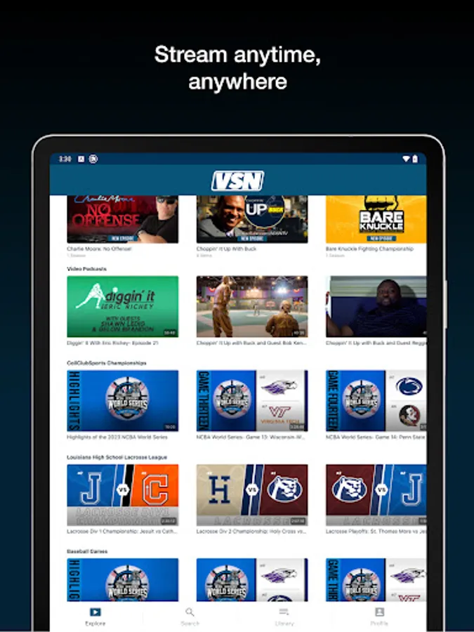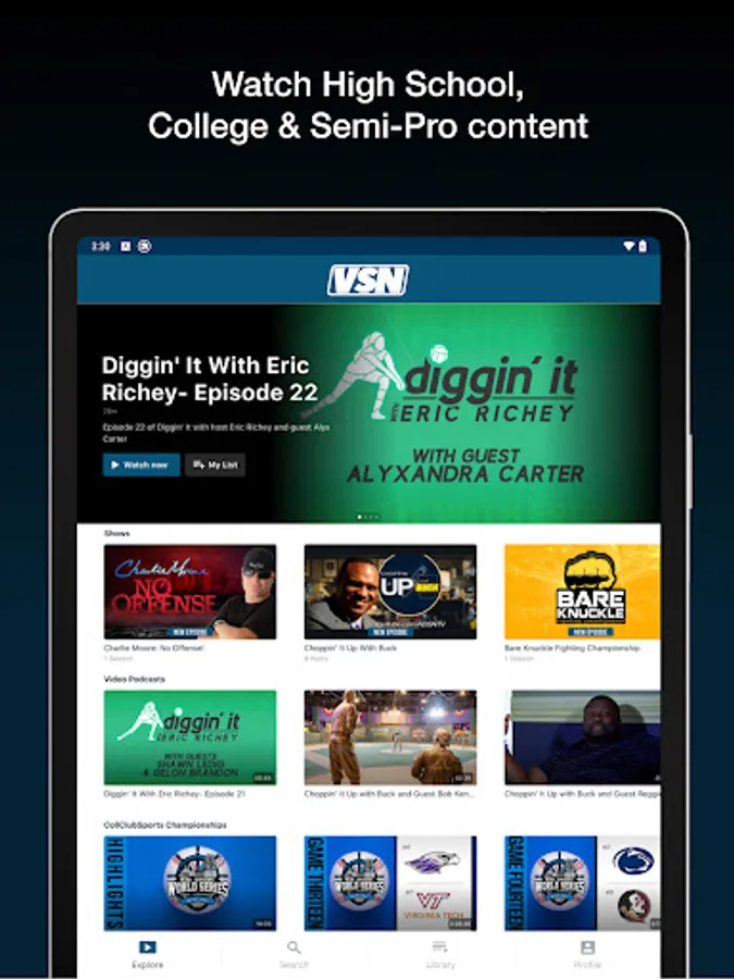 Varsity Sports Now is a Sports OTT (Over-the-Top) network that features live-streaming games, shows, and docuseries. VSN offers High School, College, & Semi-Pro content to be consumed anytime/anywhere on the device of your choice.