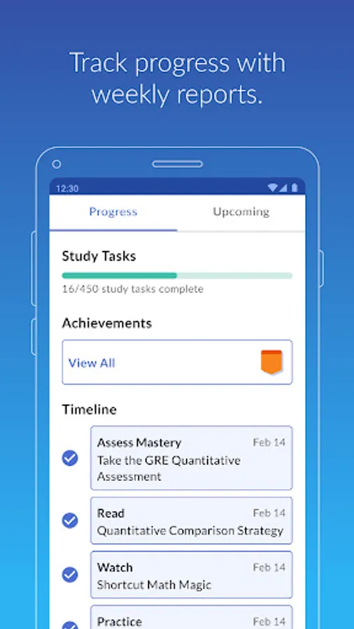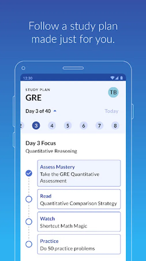 Did you know? To score in the 90th percentile of most standardized tests and certifications, you often only need to master 70% of the skills. Meet Ace, your personal prep coach and cheerleader. Ace tells you exactly what you need to do to get the score you want so you can pursue your career goals. Enter your exam date, tell Ace your goal score, and get a personalized plan just for you. The Ace app is currently available for GRE and NCLEX-RN test takers.
