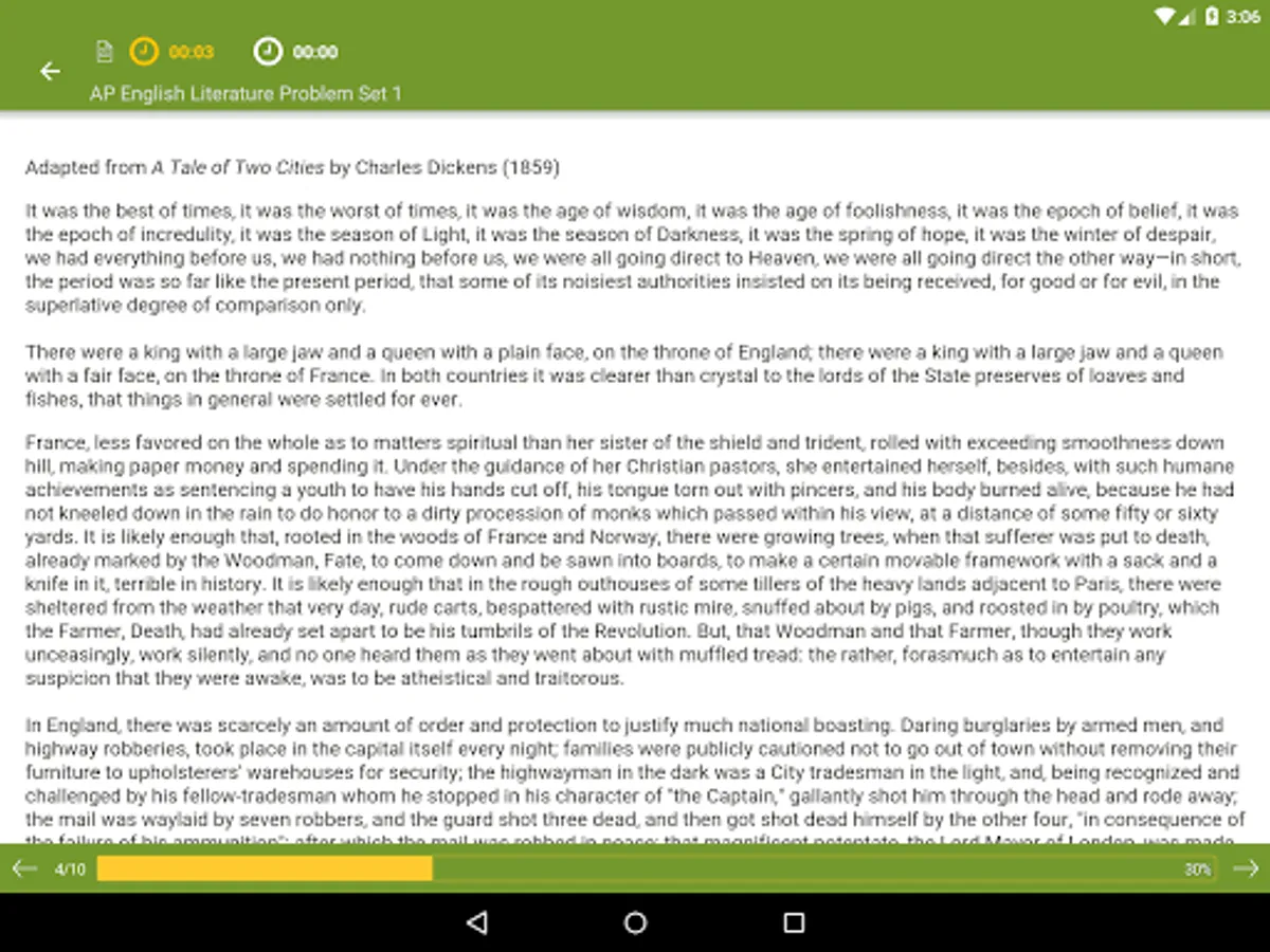 The app features professionally written material that is always based on the actual exam. Practice and diagnostic tests are also timed, allowing you to gauge if you are working at an appropriate speed for the real exam, which only allows about 12 minutes per passage.