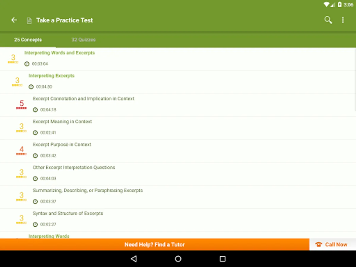 The AP English Literature app contains a compendium of learning concepts and flashcards in a variety of areas, from connotation and implication, to the motives, goals, and actions of literary characters. Test yourself on these individual concepts, or take a full-length practice or diagnostic exam to assess your readiness for the AP English Literature test.