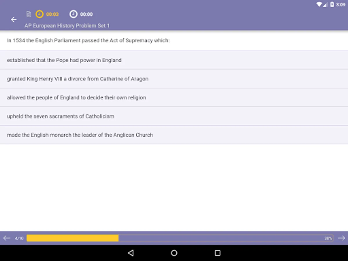 Varsity Tutors' AP European History Android app offers powerful free tools for AP European History including full-length diagnostic tests, flashcards, questions of the day, and more that can significantly aid you in your studying.