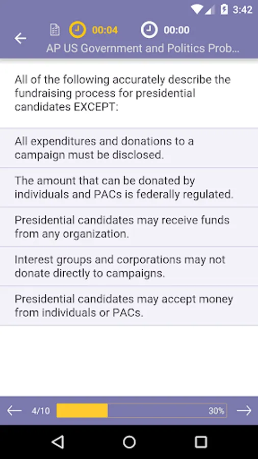 Use the app’s Learn by Concepts tool to read about and take practice questions on concepts from the role of the courts in civil rights, to the Bill of Rights, to citizen participation, and to congressional procedures, to name just a few. When you are ready, take one of the app’s many practice or diagnostic tests, featuring professionally written material to mimic the difficulty of the real exam. Identify testing weak spots using the diagnostic exams’ detailed feedback on results by concept area, and easily share your results with friends and family.