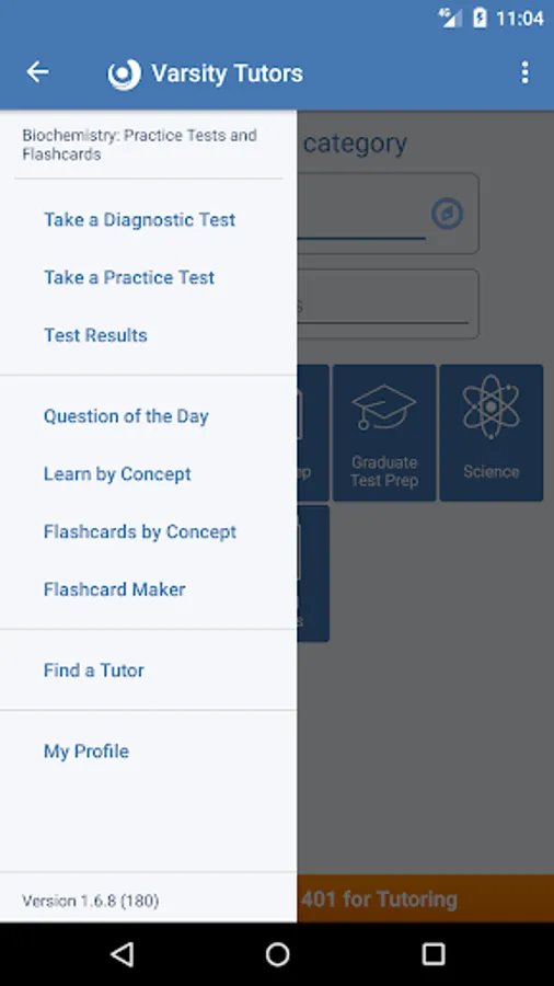 Varsity Tutors' Biochemistry Android app offers powerful free tools for Biochemistry including full-length diagnostic tests, flashcards, questions of the day, and more that can significantly aid you in your studying.