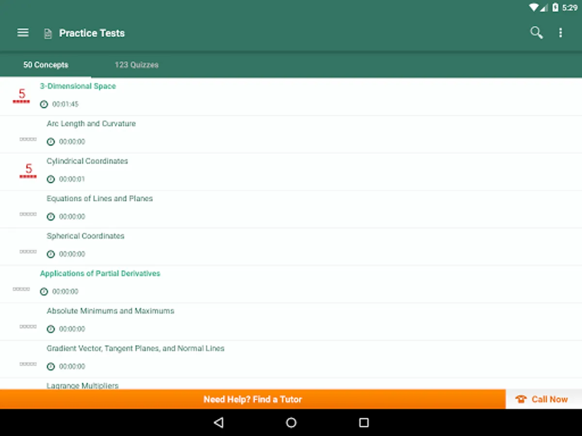 Ready to move on to timed practice problems? The Varsity Tutors app offers 150+ Calculus 3 practice tests that will give you a thorough run-through of each question that is asked. You will also receive detailed results of your score to help show you your strengths and weaknesses. The app also has a timed question of the day feature that you can tackle to see how you are progressing every day.