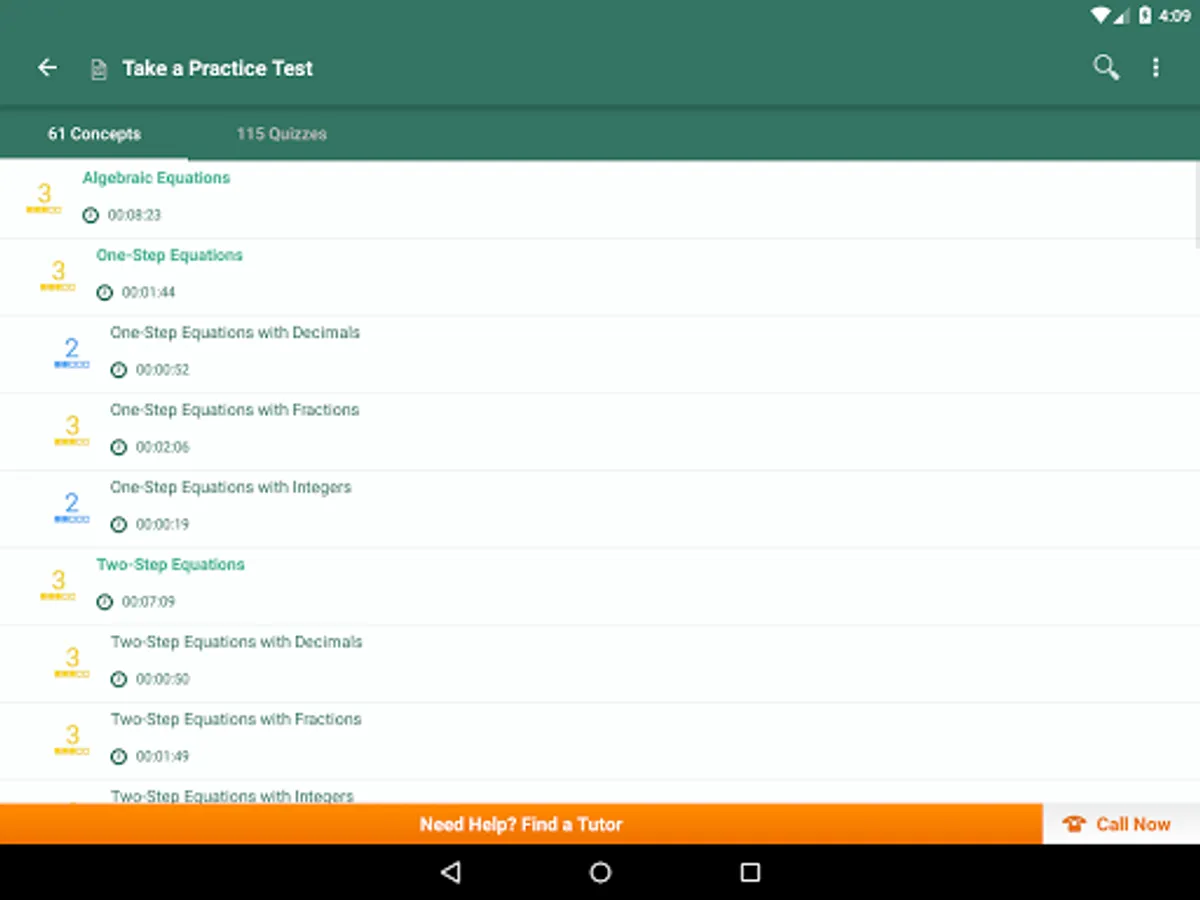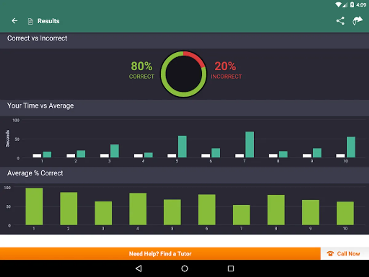 To prepare for quizzes or unit exams, choose from the assorted practice and diagnostic tests provided on the app, and send your results to your teacher or tutor with the swipe of a finger. You can also track your progress and identify areas of concern using the app’s Tests Taken feature.