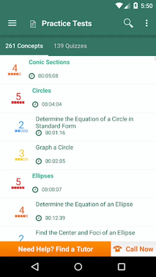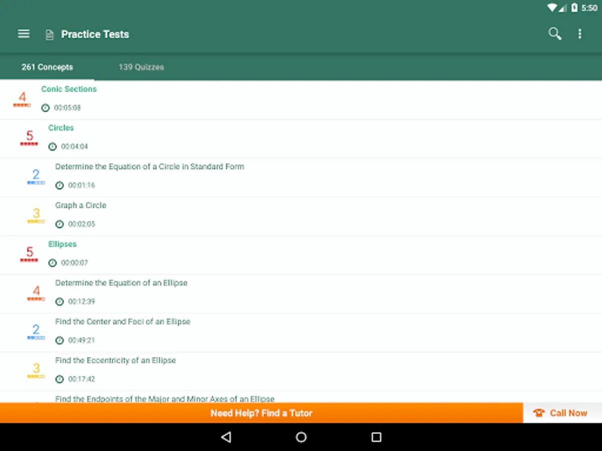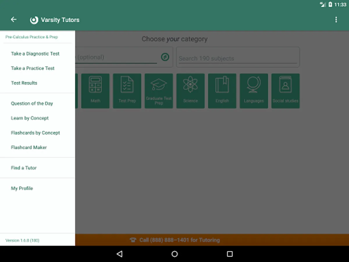 With the free Varsity Tutors Pre-Calculus app for Android-powered smartphones and tablets, you can find the help for Pre-Calculus with an easy click. The app includes diagnostic tests, interactive flashcards, and even a question of the day feature. There is also a syllabus within the app that has Pre-Calculus materials broken down in detailed order. You can start from the top, or if there are certain areas of Pre-Calculus you would like to study, you can jump down and click on any category.