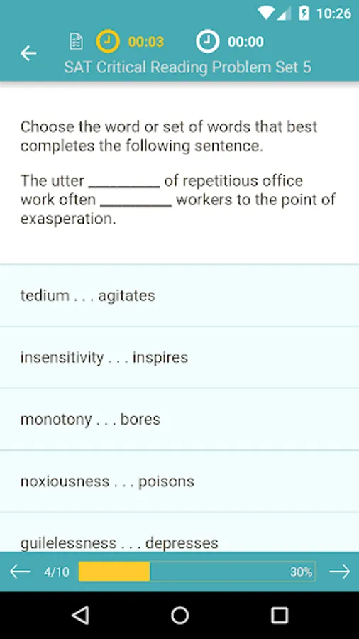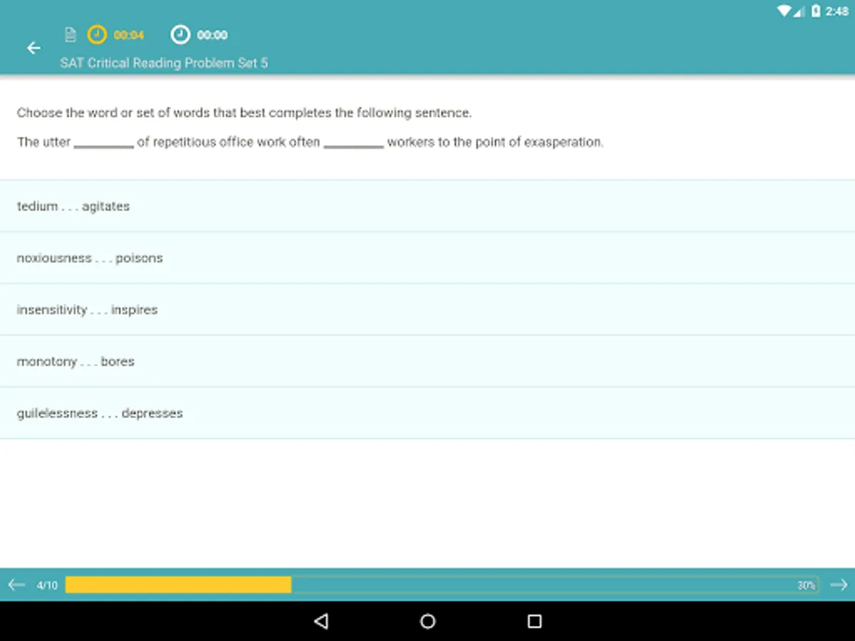 Varsity Tutors’ SAT Prep app for Android-based smartphones and tablets demystifies studying for this intimidating college entrance exam. Our app developers utilize professionally written questions to imitate the rigorous level of testing that the real exam provides.