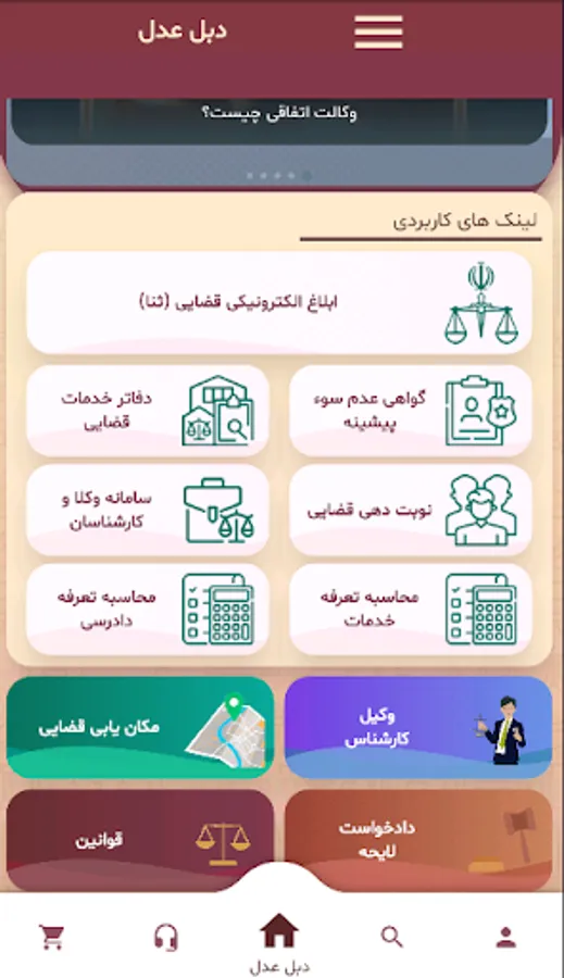 Solving legal needs, including judicial electronic notification, petitions, bills and complaints, declarations, legal news, choosing a lawyer and official judicial expert, judicial locator, including judicial electronic service offices, prisons, courts, all judicial centers, etc. .