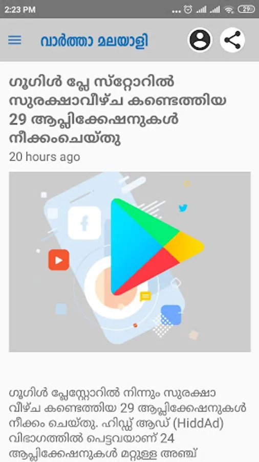 Using Vartha Malayali application users can share the trending news in malayalam to whatsapp, facebook, tik tok and many other platforms. Users can receive the shared news with a link in it. News can be read through the browser window.