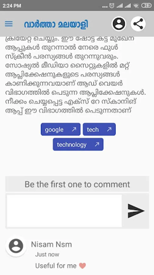Vartha Malayali is an online news reading application in Malayalam. It updates several times in an hour. Users can create their account and respond to the latest malayalam trending news and articles. Users can always react to the public incidents happening in Kerala, India and all over the world. Users can read news in Malyalam language even though it is developed in English. Functions and features like Live Radio in Malayalam and Live tv and Live news in Malayalam are some extra ordinary features that we are working on. Next update will be the best version for users who like to read malayalam news online.
