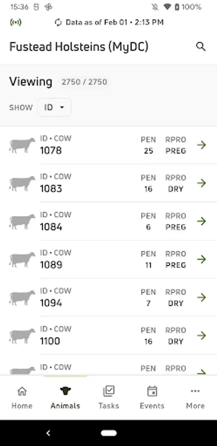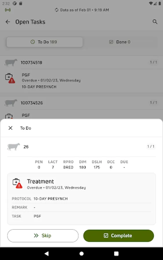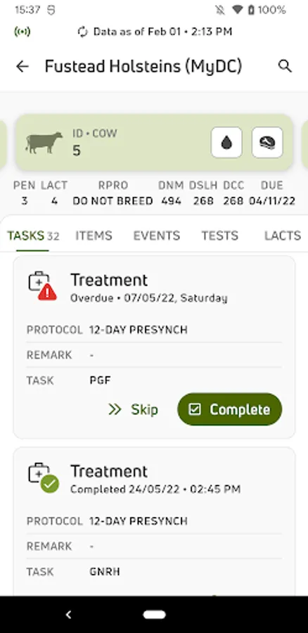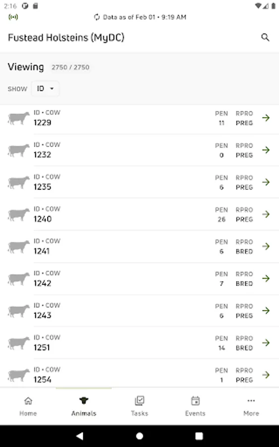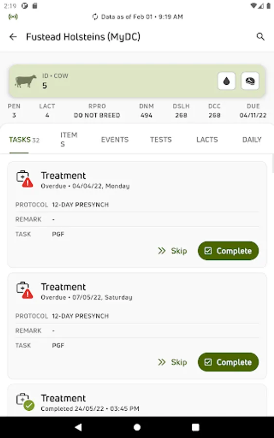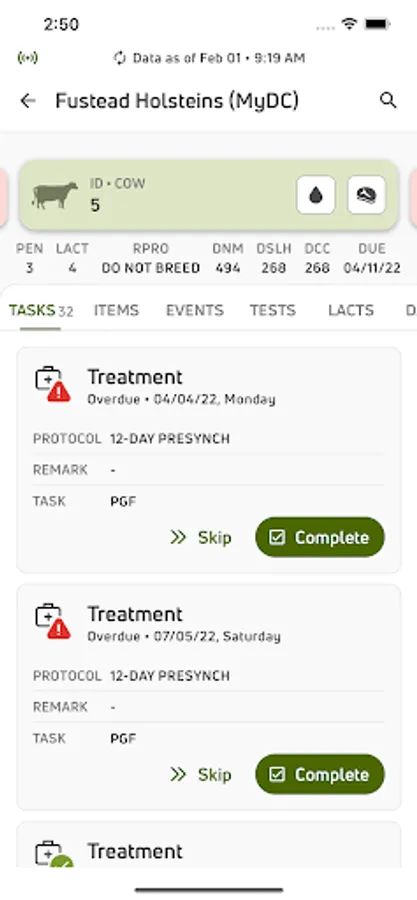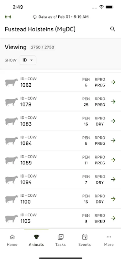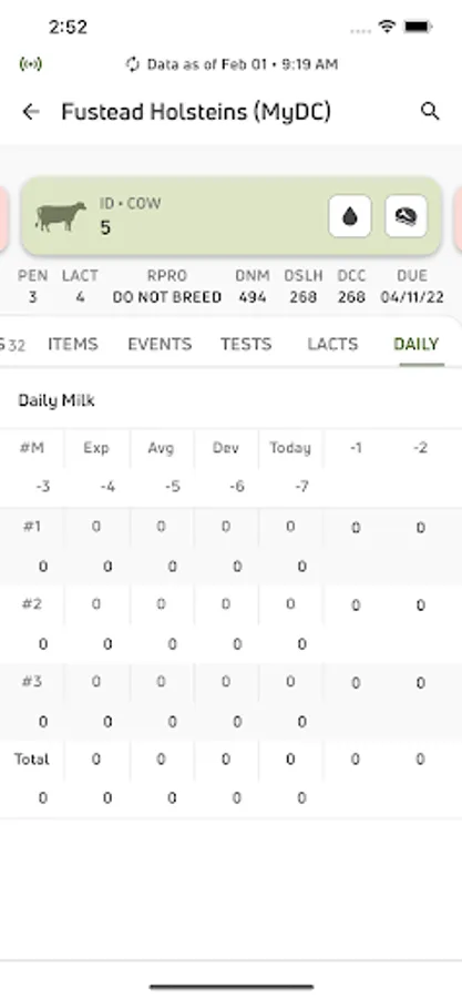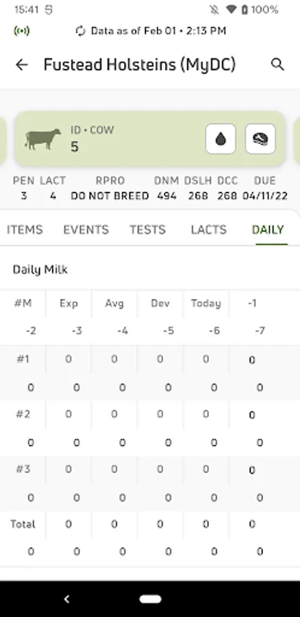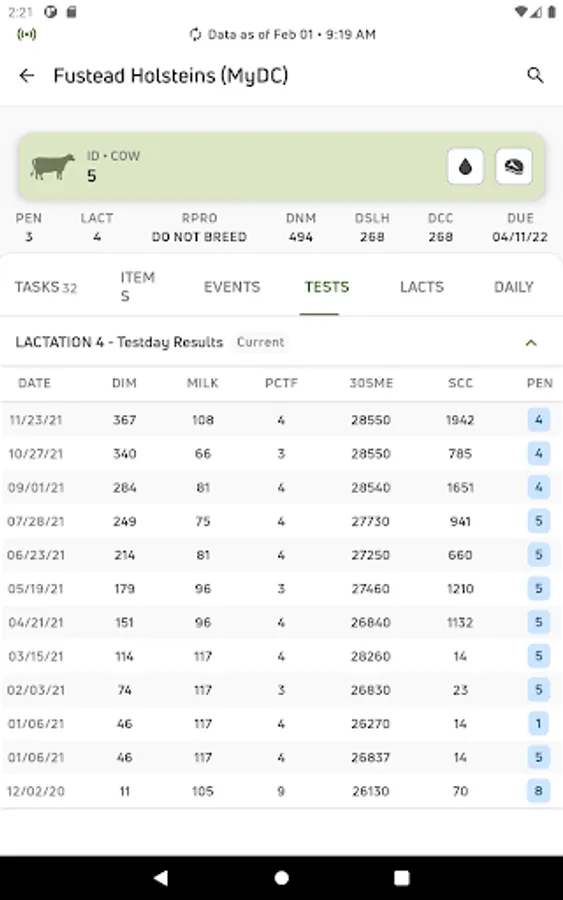 • View individual cow data for current lactations and easily see if there is a milk or meat withhold on an animal