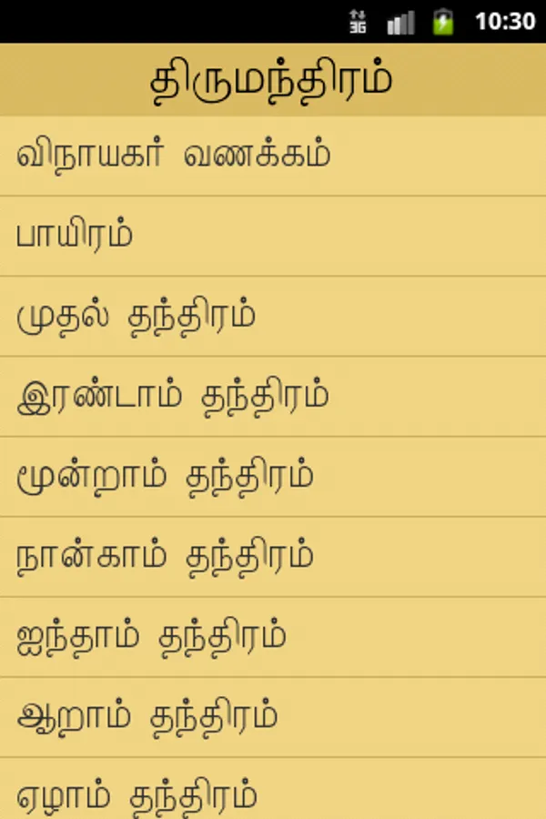 Thirumanthiram is the tenth Thirumurai in the Tamil Saivaite Panniru Thirumurai. It has been divided into nine sections called Tantras, containing the quintessence of the Saiva Agamas. Sekkizhar, the author of Periyapuranam, designated this Tamil classic as "Tamizh Moovaayiram" since it possesses 3000 poems each of which has unique metrical structure, each line consisting of 11 or 12 syllables, depending upon the initial syllable.