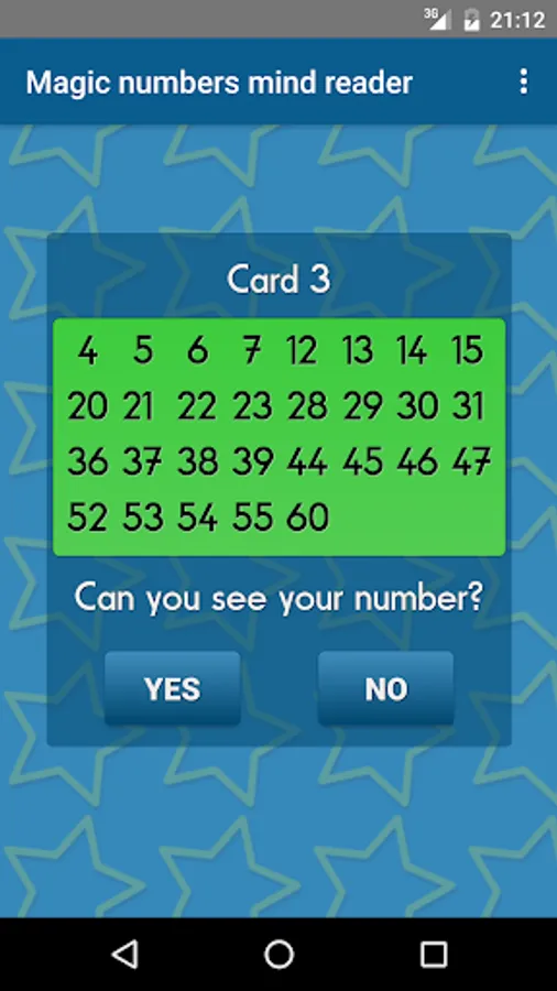 "Think of a number between 1 and 60. Six cards will be shown. After the last one, your number is revealed."