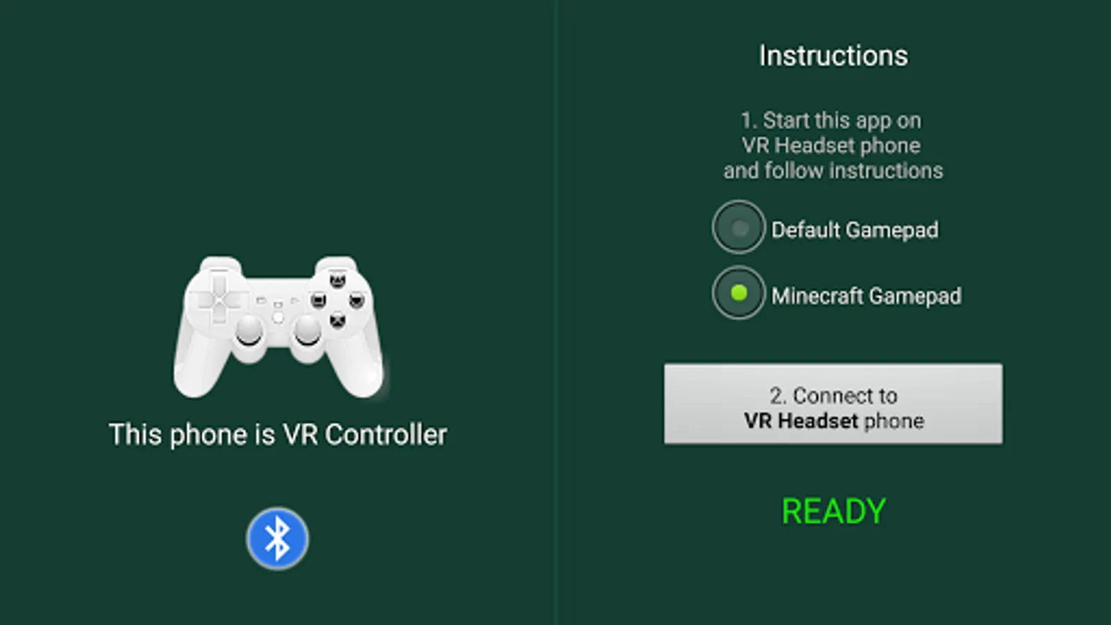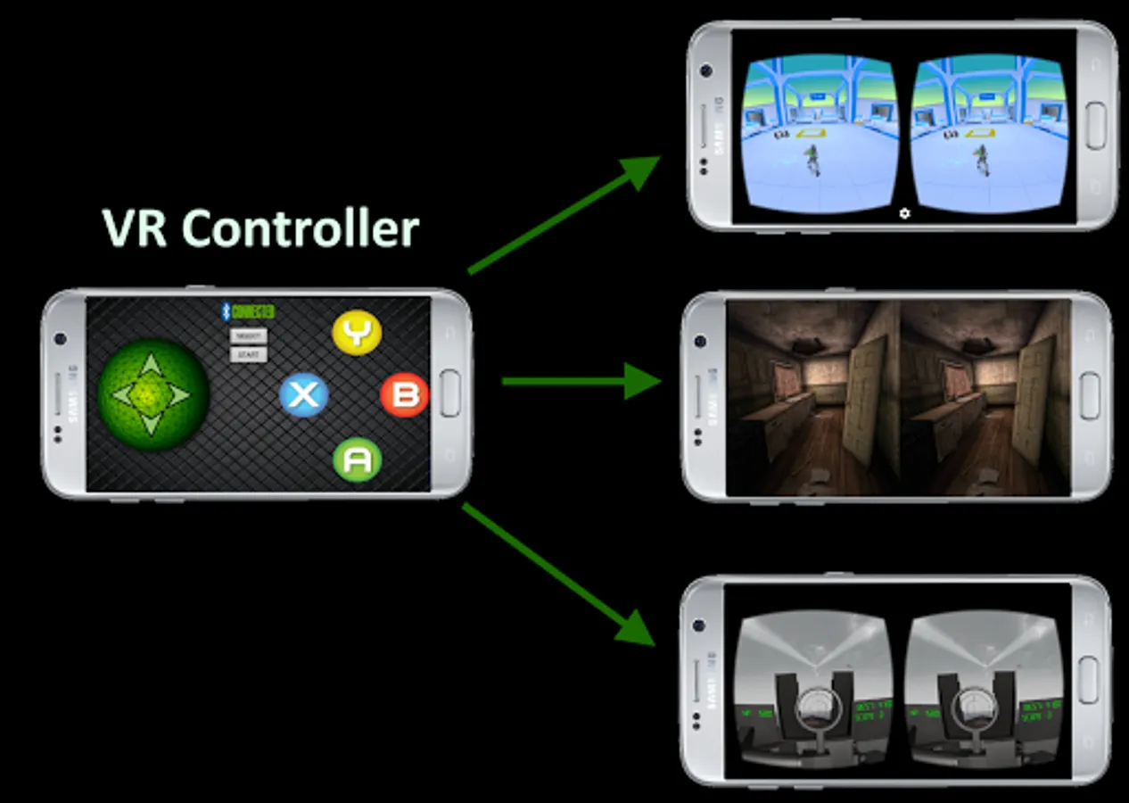 The app turns old Android phone into a Bluetooth VR Gamepad for virtual reality headsets on Android (like Gear VR).