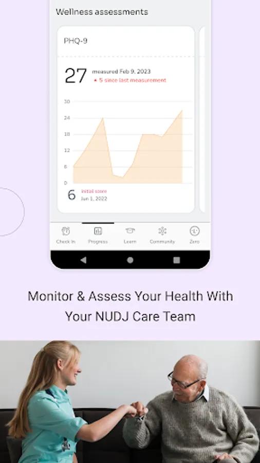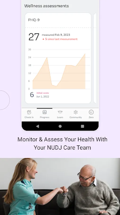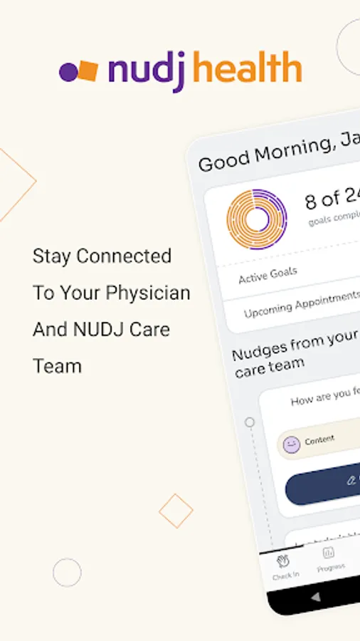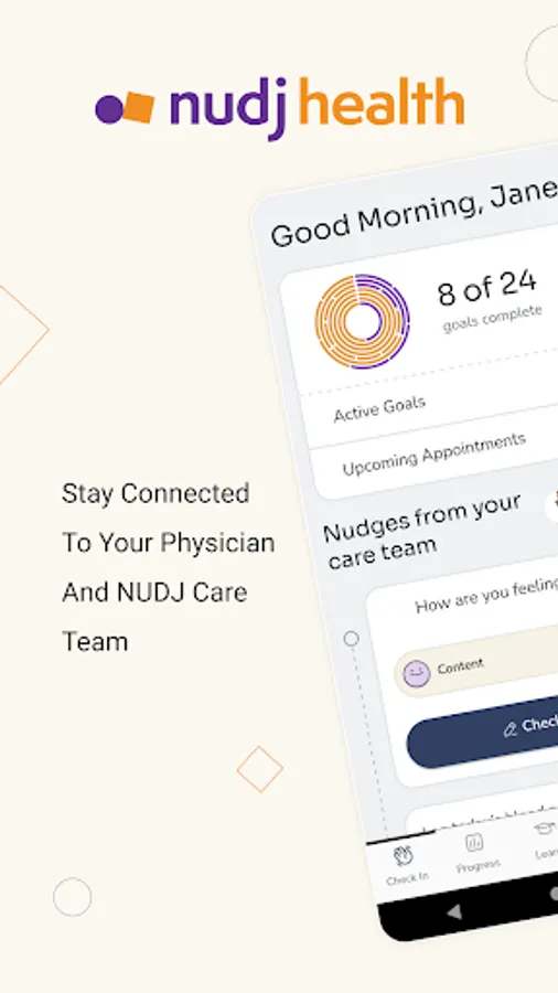 Nudj Health is a unique lifestyle medicine app, that helps you track your health progress in six interconnected lifestyle areas, including your stress, nutrition, exercise, sleep, social support, and behavioral risks like tobacco and alcohol use. In addition, the Nudj Health app allows you to stay connected with your care provider and the Nudj Health team all the time. Clinical evidence shows improving your lifestyle areas can directly improve your physical health, overall wellness, and well-being. Our commitment to improving your health begins with extending our care for you beyond the walls of your doctor’s office in the comfort of your own home.