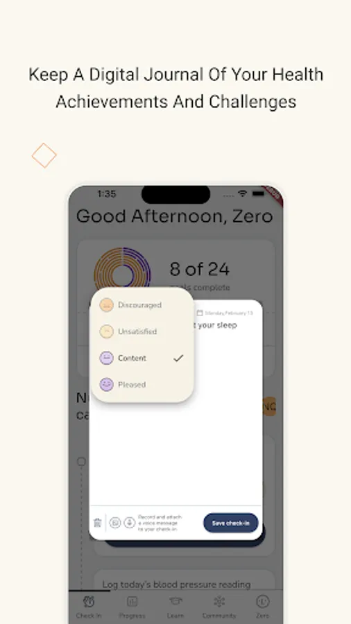 We know that your health journey is constant and fluid and a lot happens between appointments. With the Journal Entry feature, you'll be able to log notes, questions win, and struggle right as they happen so that your Care Team can stay updated on how you are doing. Appointments with your Wellness Guide and Care Manager will be much more efficient!