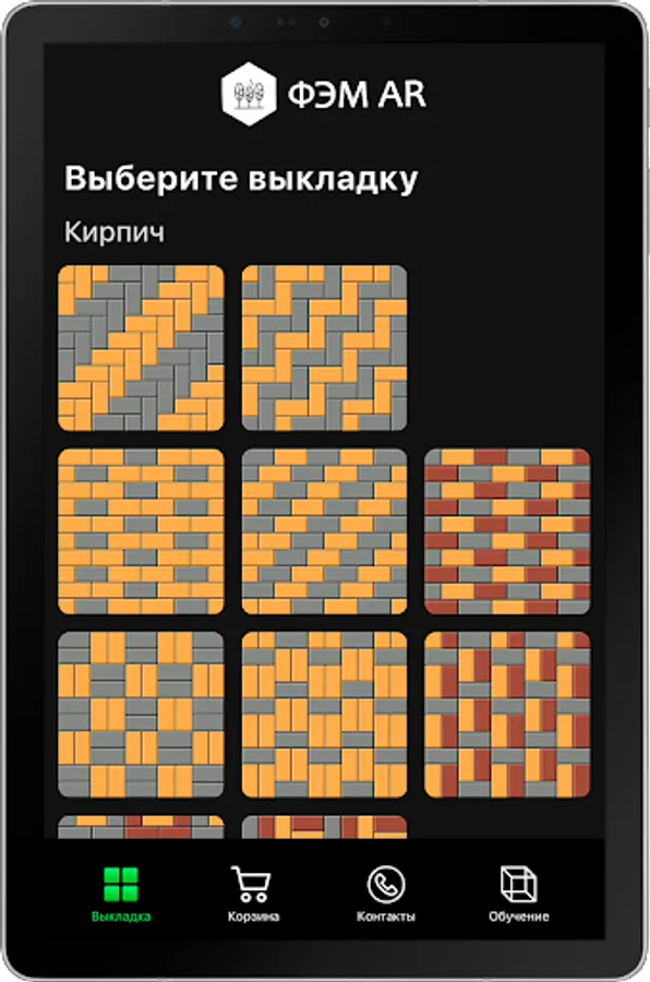 FeM AR allows you to choose suitable options among a variety of layouts and tile colors, to estimate the required amount of material.