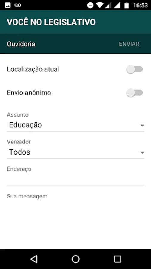 We offer options for the citizen to send criticisms, requests, suggestions, complaints, complaints and much more, directly to the councilman that he chooses.