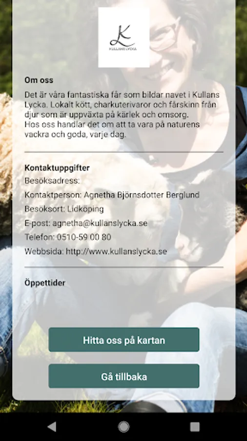 By using the map in the app that shows you the way to your destination, you can also find information about products, contact details and opening hours for the company you want to visit. This is an invaluable tool for those who love locally produced foods and restaurants near you.