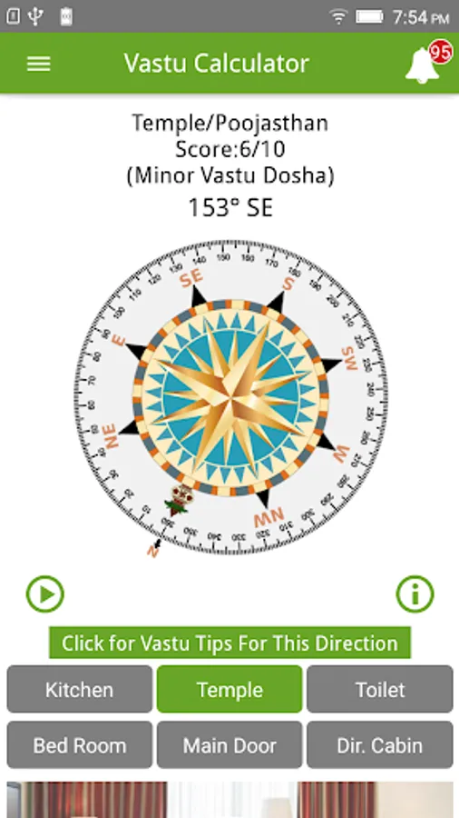 · Vastu Compass – An accurate Vastu compass that helps tell you the Vastu Score.
