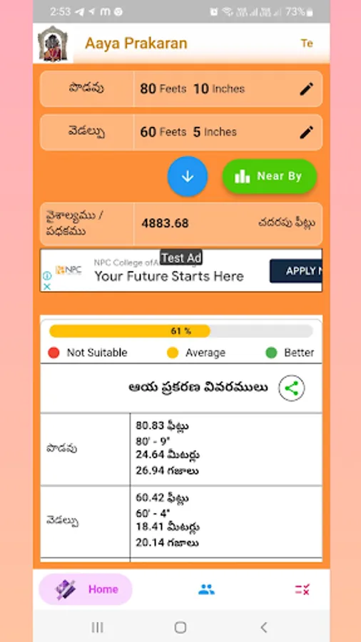 A most useful tool for VAASTU PANDITS AND ARCHITECTS. Using the AAYA PRAKARAN app you can calculate all the important SHODASHA VARGA values for any given land/plot area of a residential/commercial property and get the accurate VAASTU COMPATIBILITY CHECK. In addition it has automatic recommendations to provide nearby values for the AREA calculated using the advanced feature. This will help in quickly updating/adjusting a given AREA with different length and breadth values.