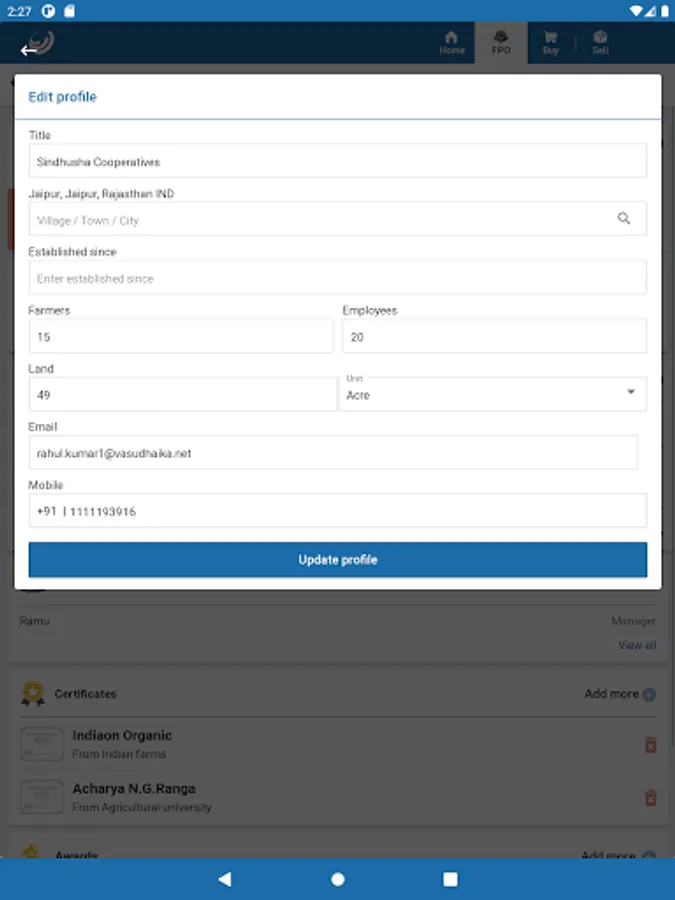 Every farmer's output is anticipated and aggregated at an FPO level. Here contextual traceability is attached for each lot and pushed to the output marketplace. FPO receives quotes or inquiries directly from buyers avoiding any middlemen