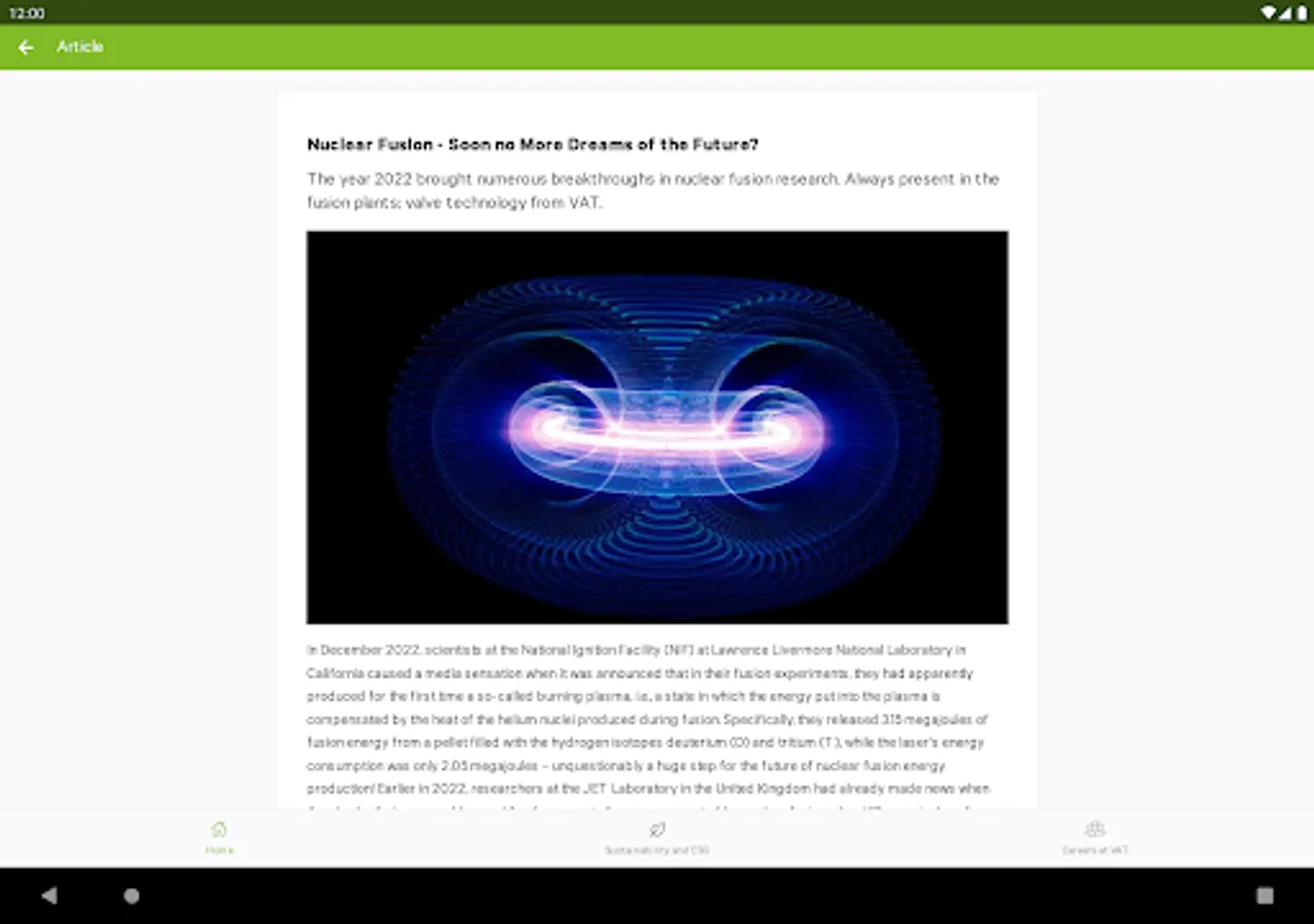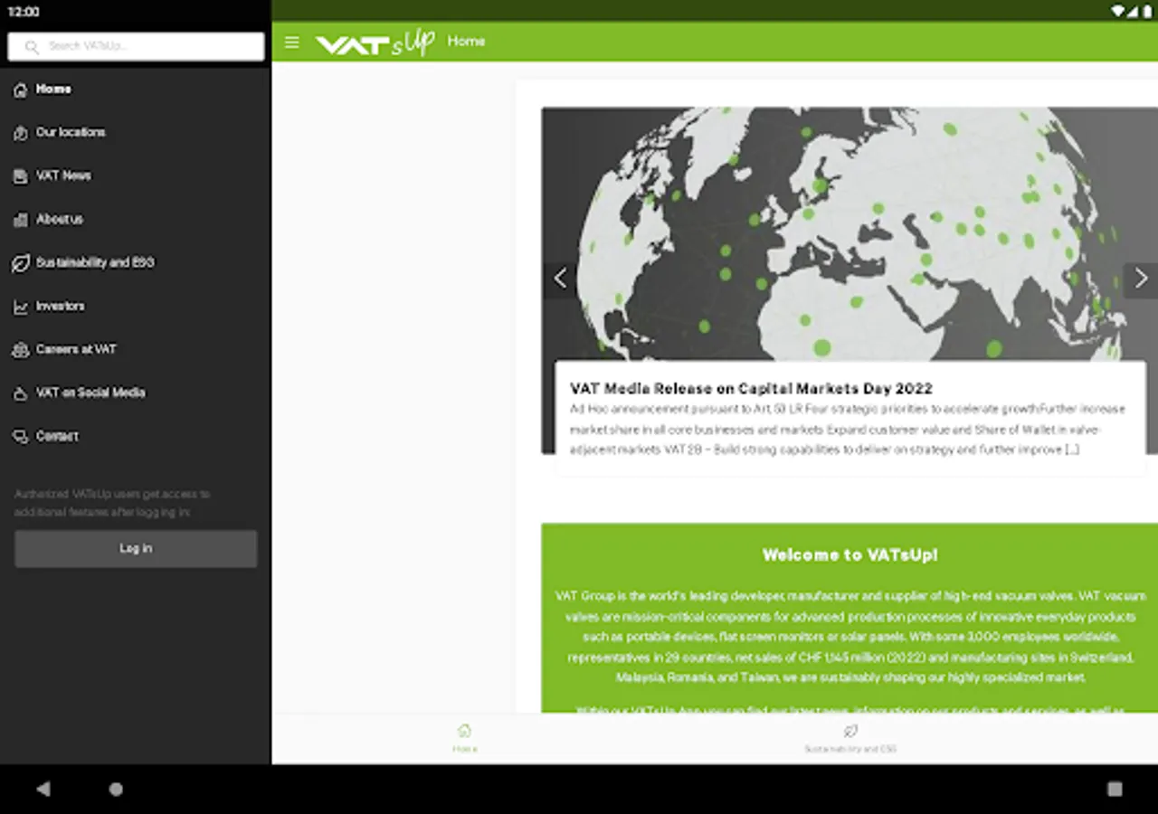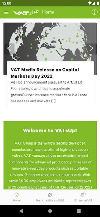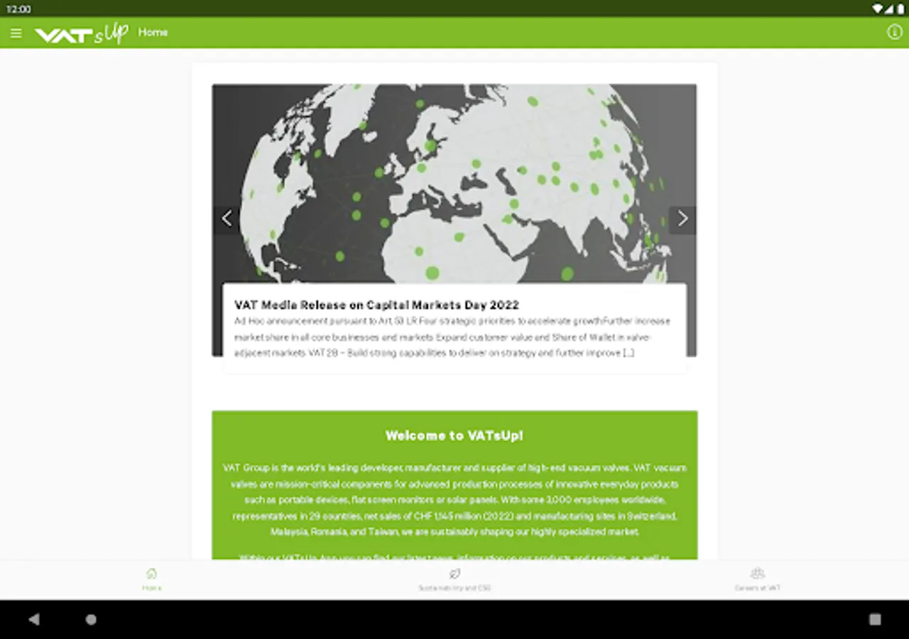 In VATsUp you can find the latest information and news from the VAT Group, discover our locations and our sustainability program, and see our open positions in our career portal. Enjoy exploring VATsUp!