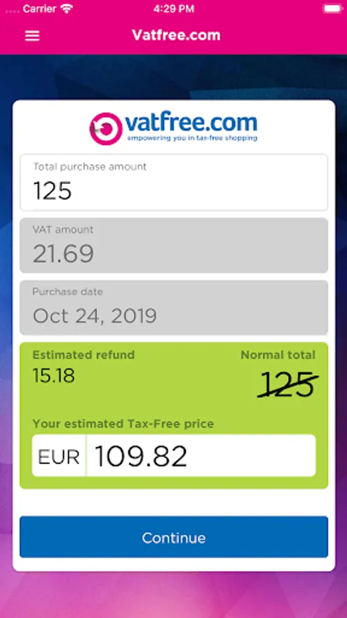 This app allows partner retailers of Vatfree.com to register and manage receipts for tax-free refunds.