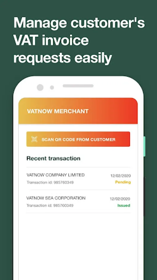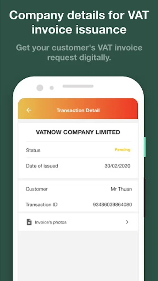 VATNOW is a mobile application supporting Merchant & Enterprise to digitize and automate the step of collecting invoice requirement & issuing VAT invoice for customer.