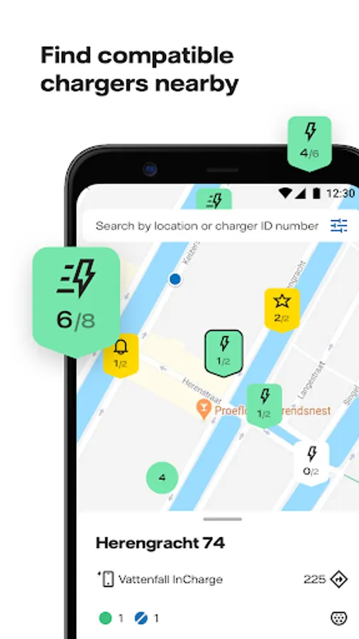 - Filter by availability and power to find compatible charging points