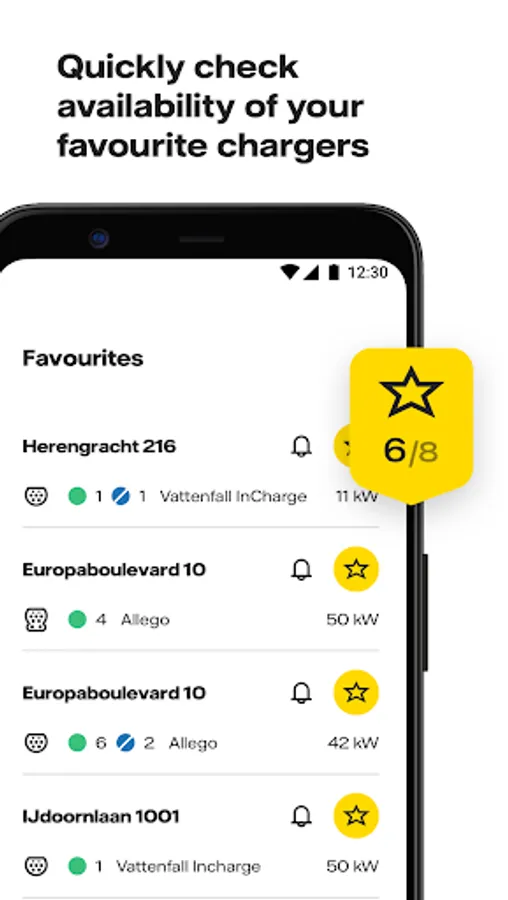 You have the option of monitoring a charging point in the app. When you do this you will be notified when the charging point is released or is occupied again. This way you know immediately when your favorite charging point is available and ready for you to charge your vehicle. It also prevents that you arrive at your destination and that the charging point is unexpectedly occupied!