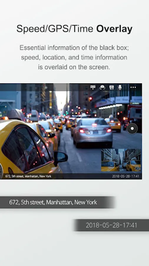 Speed, location, and time information, which is essential information of the black box, is overlaid on the screen.