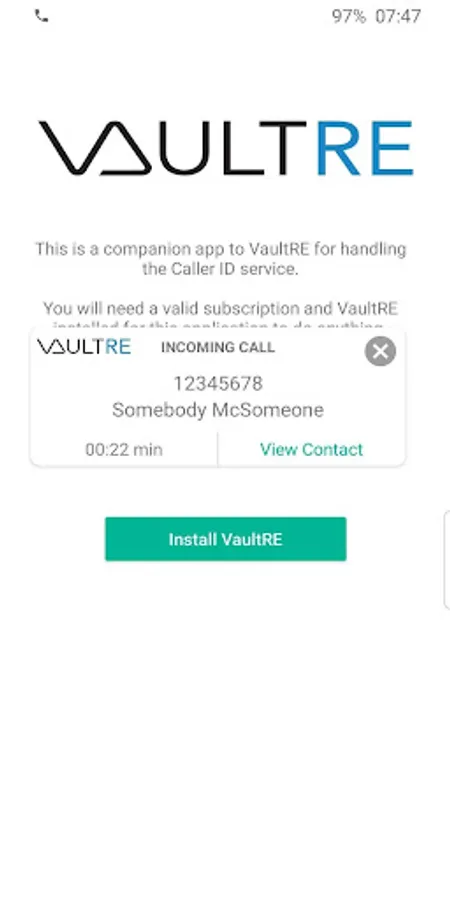 This app requires an active VaultRE subscription. Please install VaultRE and log in to enable the Caller ID service.