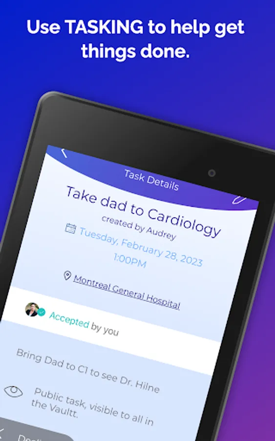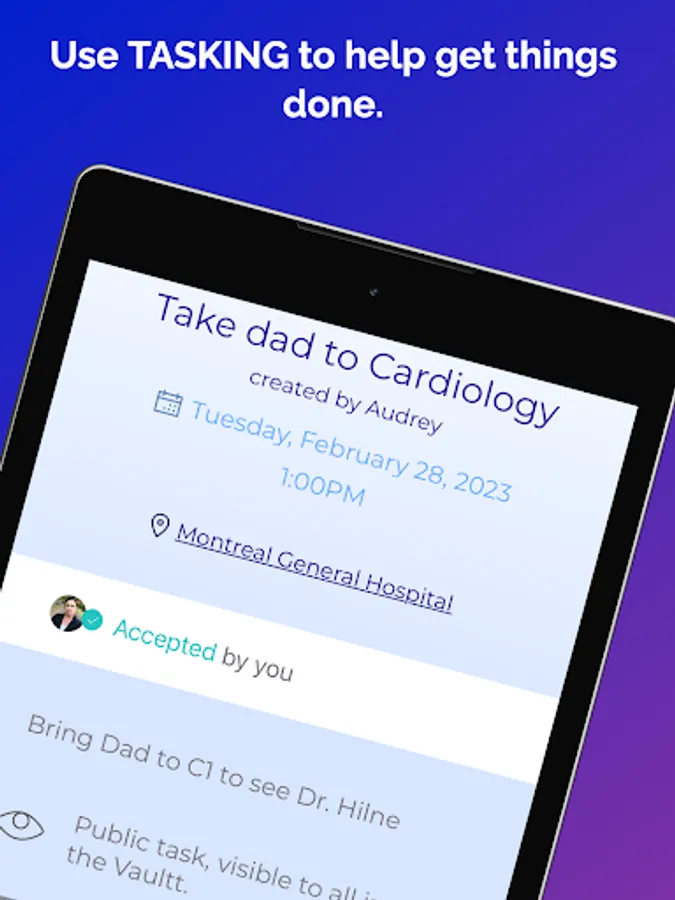 Vaultt is a fully-encrypted health-focused information management and communication platform to help patients, families and caregivers store, manage and share important information. Vaultt’s easy-to-use mobile app enables real-time and on-demand access to critical information, documentation, schedules, and tasks that can be shared between family members and trusted health professionals.