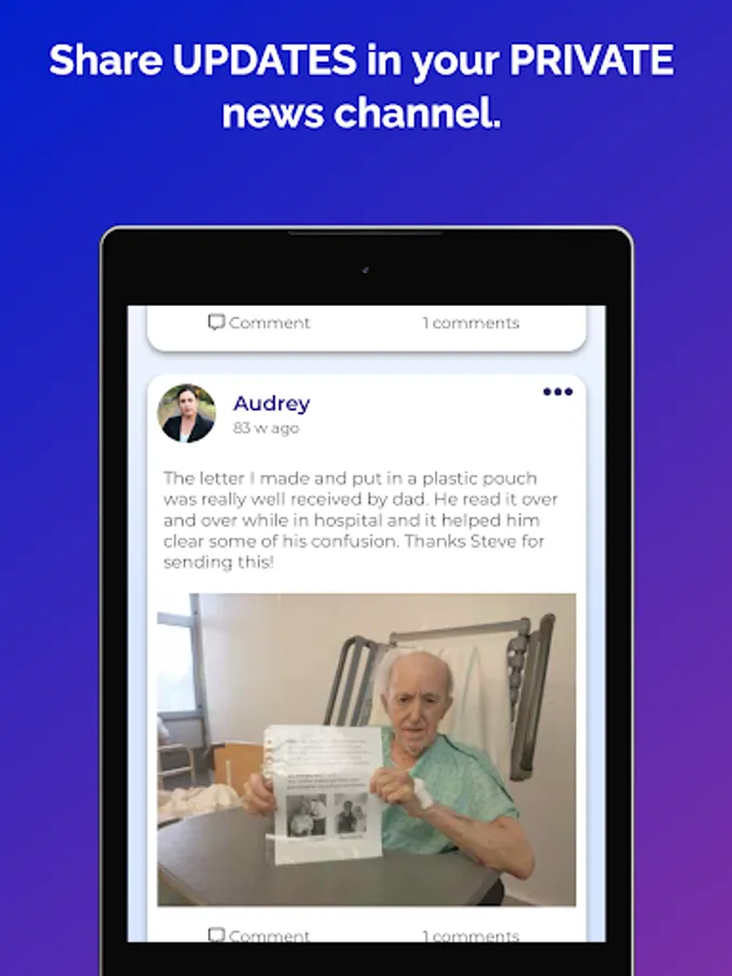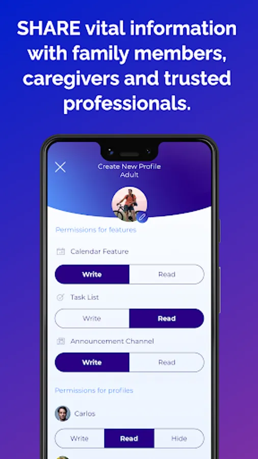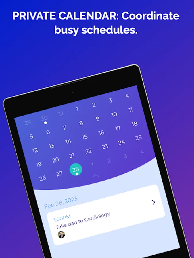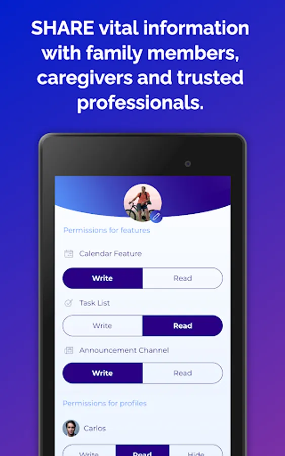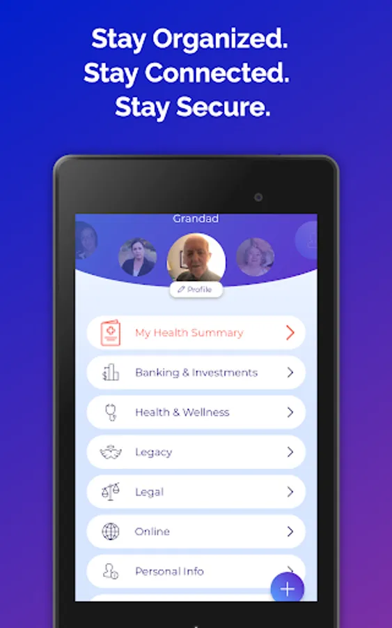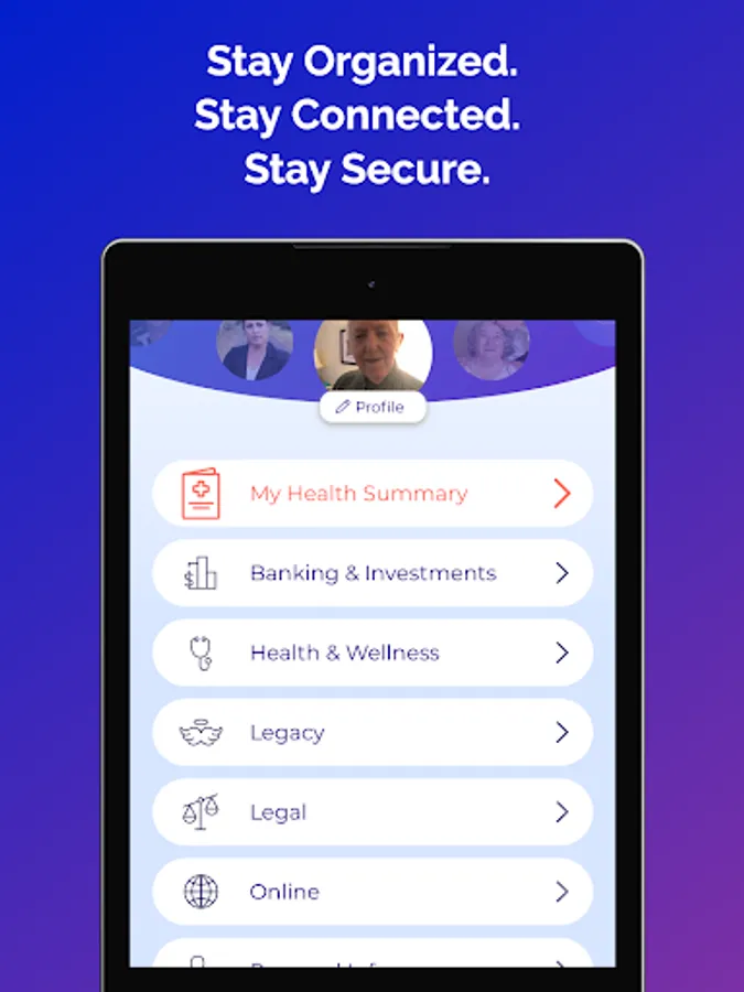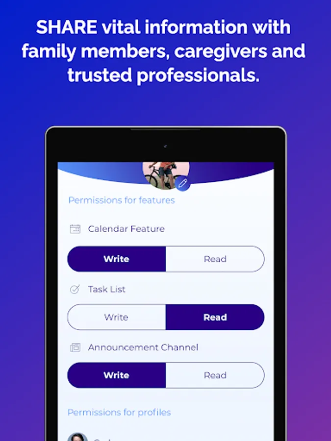 - Children and siblings of aging parents to share and access important health and wellness information, and for storing banking details, prescriptions, Wills, Power of Attorney and other important information. Collaborate the care!