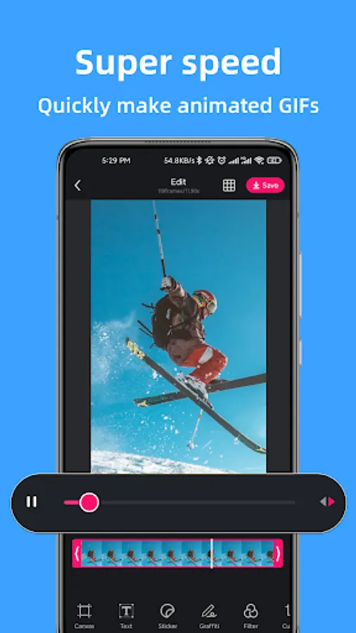 -- Powerful cropping and massive filter material to make your GIF more eye-catching;