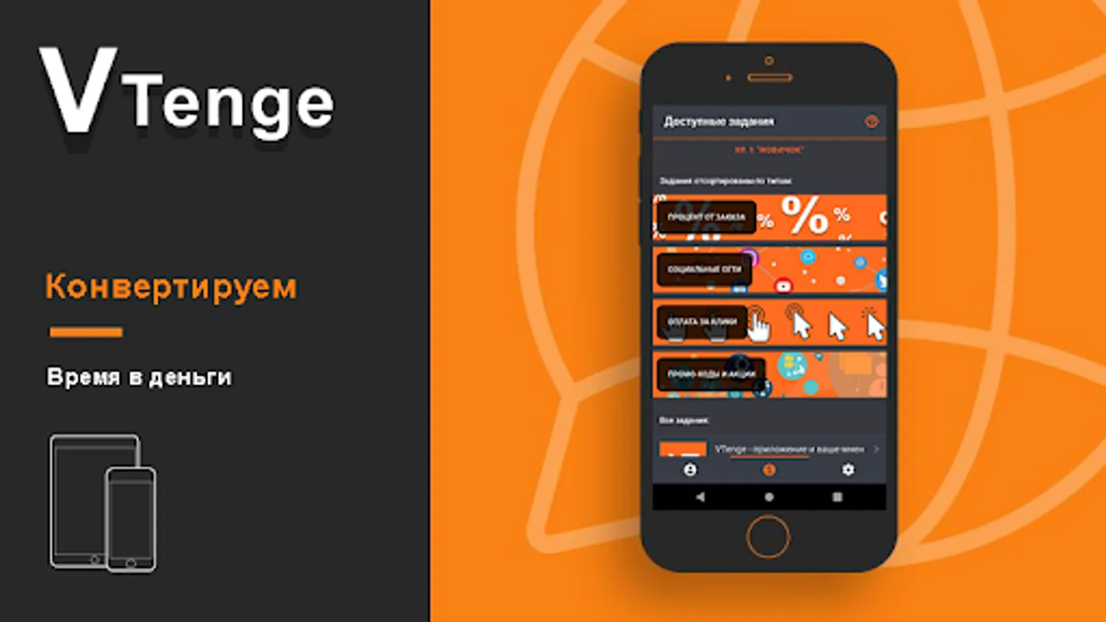 VTenge - This application is a mobile version of the system for making money on the Internet. This is the first Kazakhstani platform for generating income (percentage of orders) and completing tasks from employers, based on partner sales with the participation of the online store www.vavellit.com and other projects.