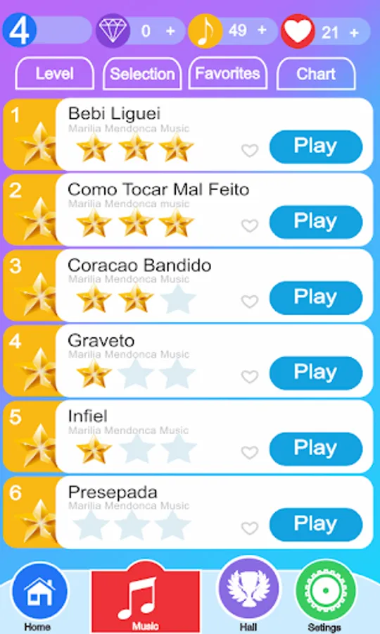 selected songs for free to reach the highest Score.