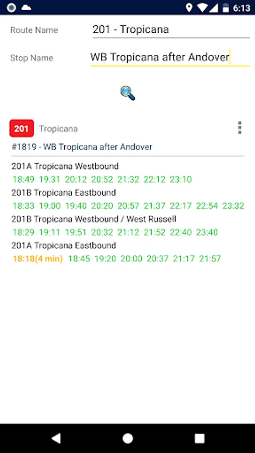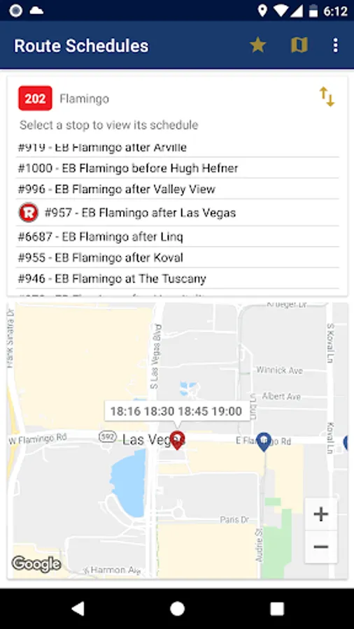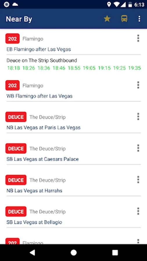 4. Stops and routes are sorted by your current location. The nearest stop appears at the top.