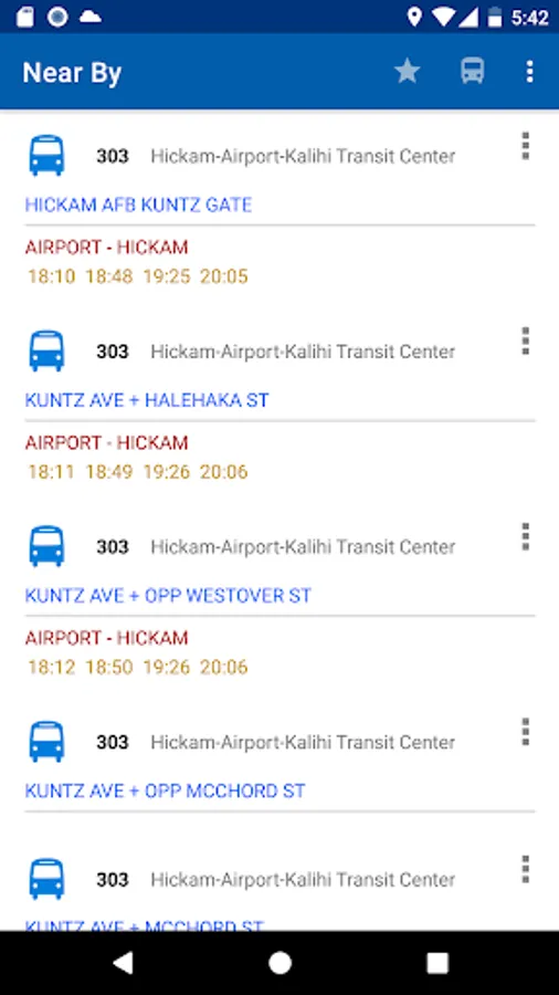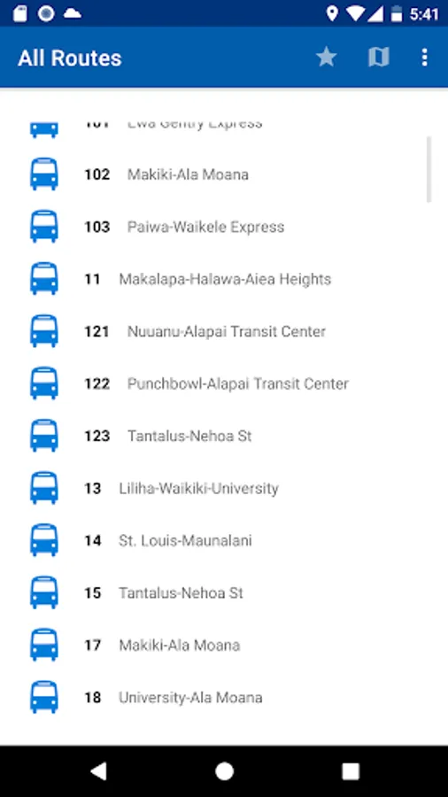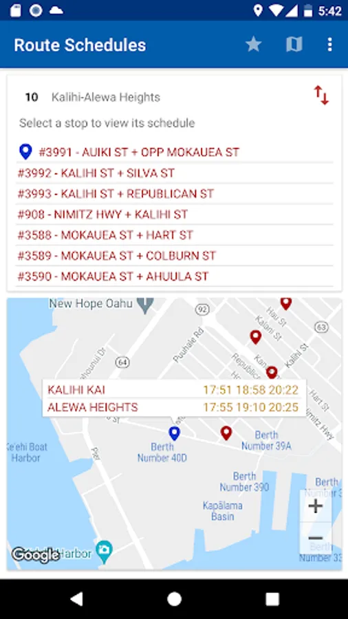 4. Stops and routes are sorted by your current location. The nearest stop appears at the top.