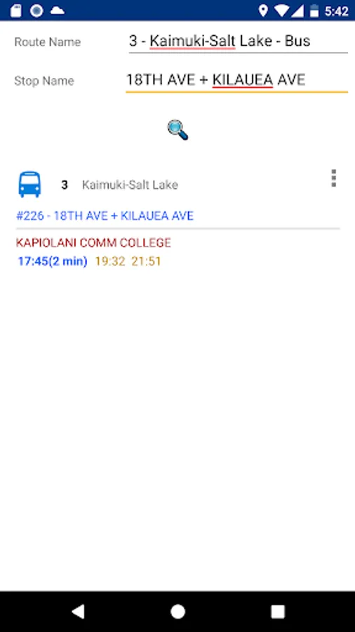 5. Search for stop id or route name