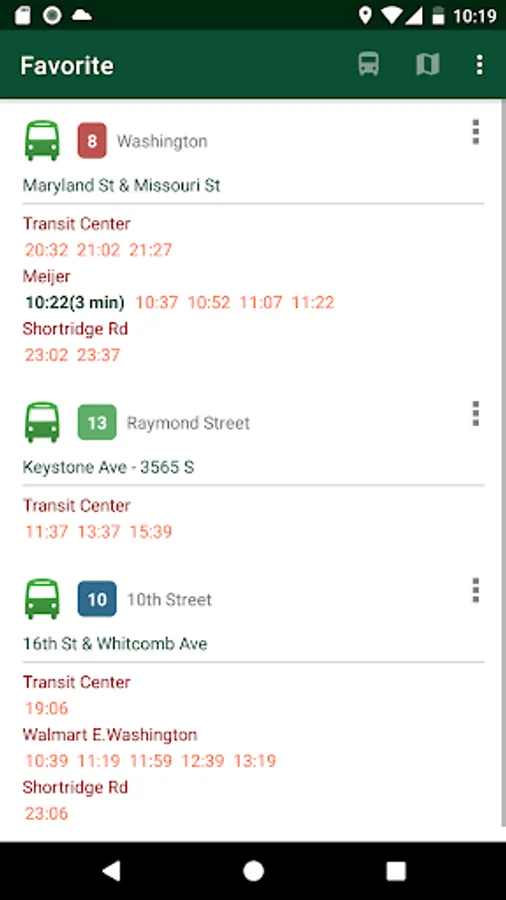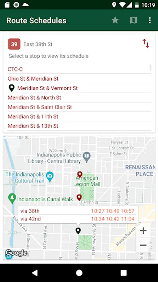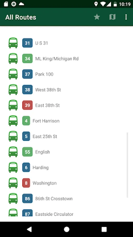 4. Stops and routes are sorted by your current location. The nearest stop appears at the top.