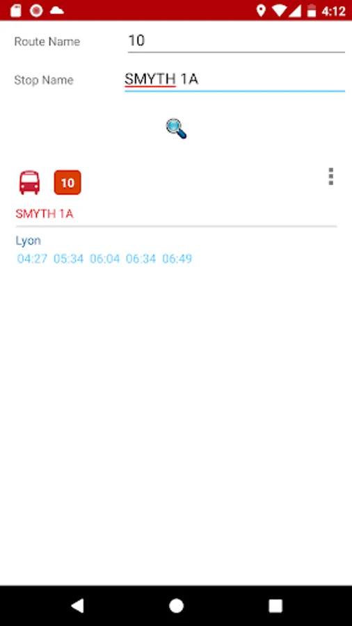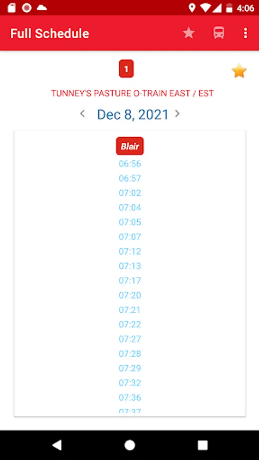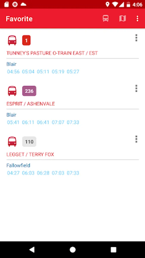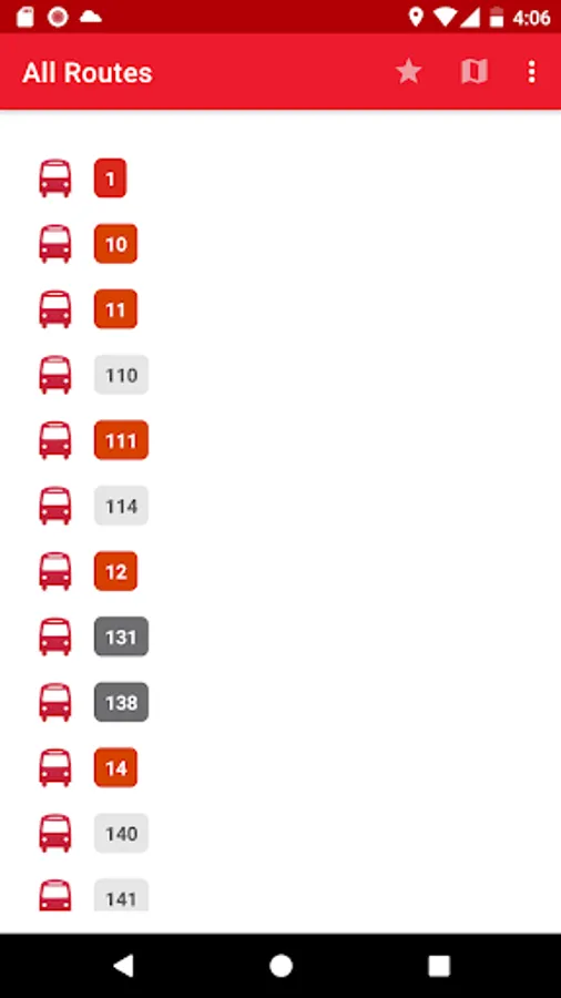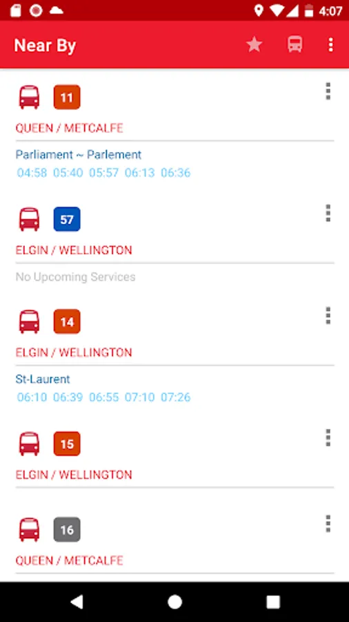 4. Stops and routes are sorted by your current location. The nearest stop appears at the top.