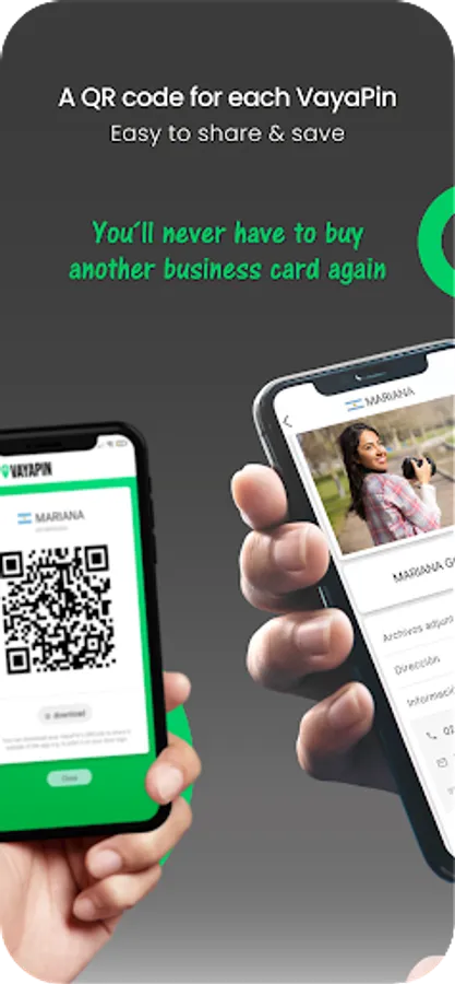 With your unique QR code, your VayaPin is also the last business card you’ll ever need (the recipient doesn’t need to download the app to receive your information.)