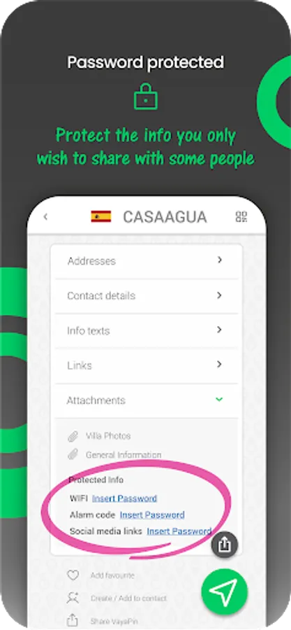 You can attach house rules, recommendations, manuals, contracts, and even password protect the info you only wish to share with a few people, such as your alarm codes and key placement.