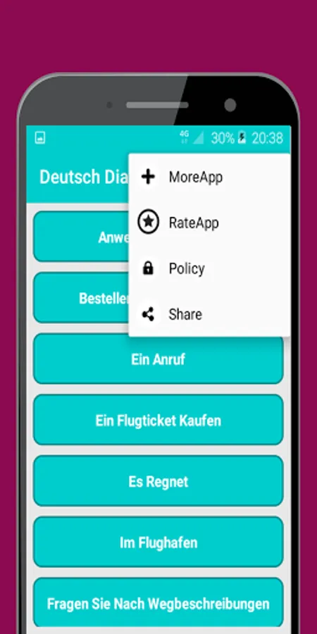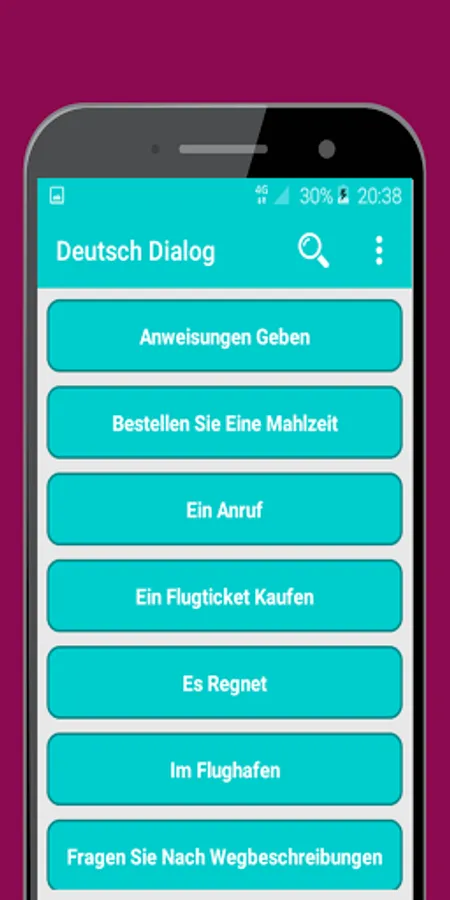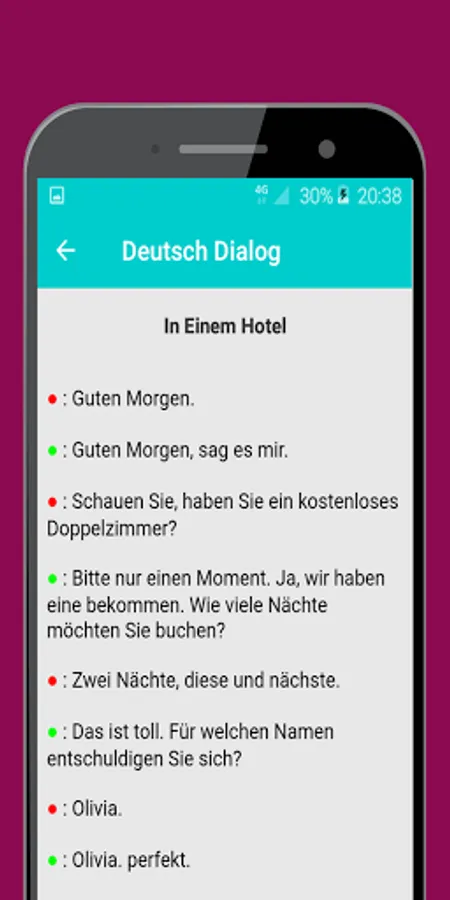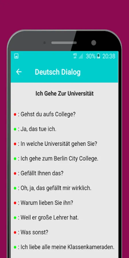 now is easy to start learn the dialogues and conversation german the app is include many conversation in daily life to learning how pronunciation the words and sentence and as well as how to form vocabulary and sentences and dialogue is an exchange of sentences and vocabulary, where the conversation takes place between two or more people, where sentences and words are completed to arrive at an idea that transmits the addressee to the recipient and where we make many changes in our daily life, for example at (home, work, school).